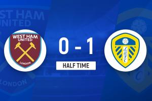 上半场比赛结束,西汉姆联0-1利兹联。