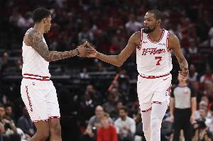 体育资讯4月10日讯 NBA常规赛,火箭主场113-102击败76人,豪取8连胜。